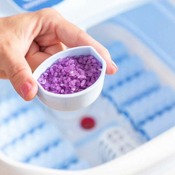 - Aromatherapie: met dit massagebad voor voeten kun je ook genieten van de vele voordelen van aromatherapie. Dit apparaat bevat namelijk een compartiment om bijvoorbeeld bruisballen, badzout en essentiële oliën in te doen. Ideaal om je vermoeide voeten te hydrateren en ontspannen zodat ze zacht, relaxed en geperfumeerd zijn.
