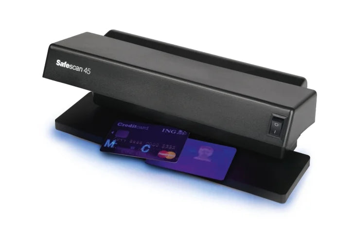 De Safescan 45 maakt niet alleen de geïntegreerde uv-echtheidskenmerken van moderne bankbiljetten zichtbaar, maar ook die van creditcards, paspoorten en andere ID-bewijzen en de uv-inkt die gebruikt wordt om waardevolle items te beschermen tegen diefstal of de toegang tot evenementen te regelen.
